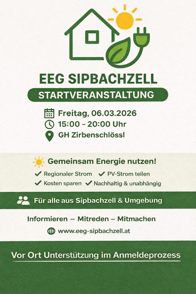 Es liegen arbeitsreiche Tage und Wochen hinter dem Gründungsteam und durch das tatkräftige Tun hinter den Kulissen können wir die EEG Sipbachzell wie geplant im Frühling starten. In der ersten Vorstandssitzung sind auch die Tarife für das Jahr 2026 festgelegt worden.