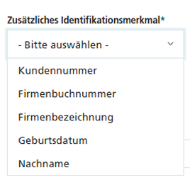 Das „Zusätzliche Identifikationsmerkmal“ geben Sie erst nach Eingabe Ihrer Mailadresse, eines beliebigen Benutzernamens und eines Passwortes ein. Erst da nach wählen Sie entweder den Nachnamen oder das Geburtsdatum als eines der Identifikationsmerkmale.